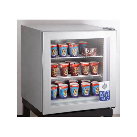 Congelador pequeño con puerta de cristal para mostrador, congelador para helados